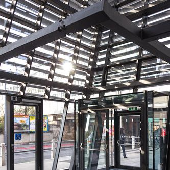 1200 Wien – Pasettistraße 74, Traisengasse 5-7 Baumeisterarbeiten Eingangsbereich Ecke S-Bahn (Strassenfassade)